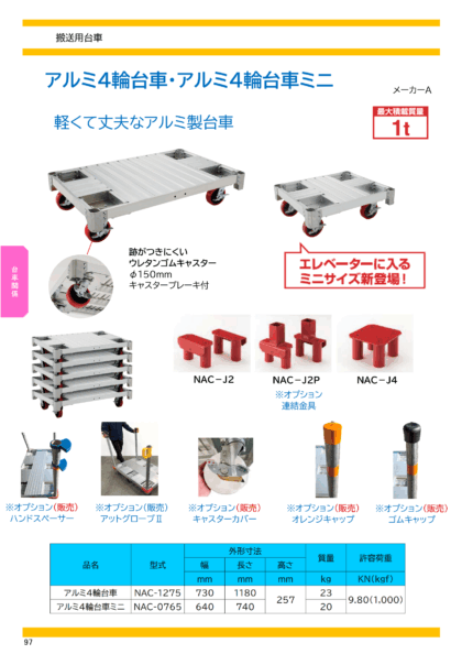 アルミ製4輪パイプ台車